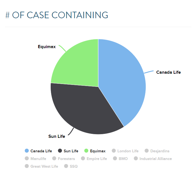 Critical Illness brings all new players to the table. SSQ dominates the case count putting Manulife and Eqitbale neck and neck for runner up. This is not shocking as SSQ has by all accounts an excellent product with extremely competitive pricing and a wide selection of range.
